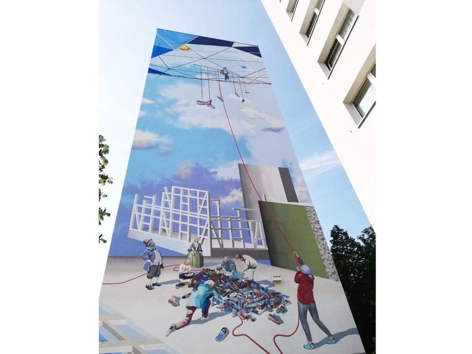 Complex wall paintings, that span multiple houses, influence the cityscape in a completely new way – just like our biggest project “Balance act” in Franckesche Stiftungen, Halle. Due to their scale and composition, they are able to change a neighborhood’s appearance, tell stories, evolve identification and sustainably improve the city.